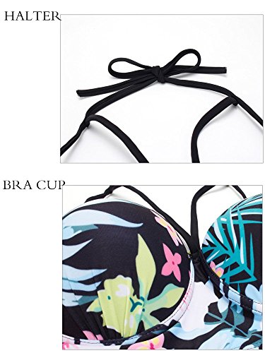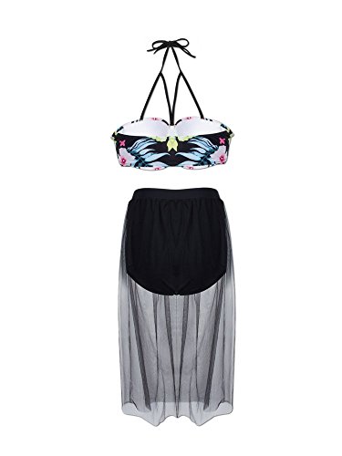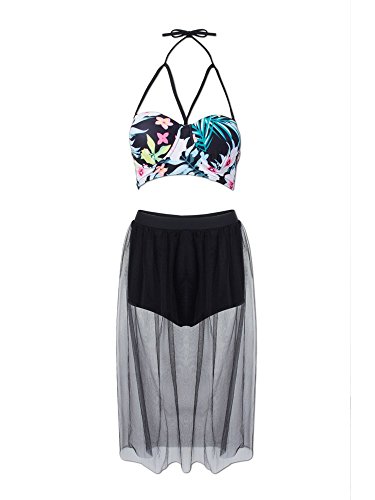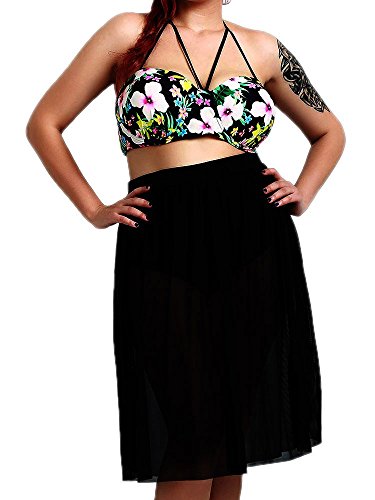 Title : Women Sexy Plus Size Halter Floral Print Mesh High-Waisted Two-Piece Swimsuit