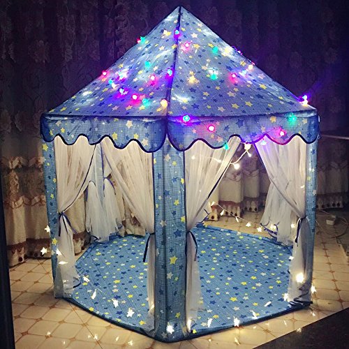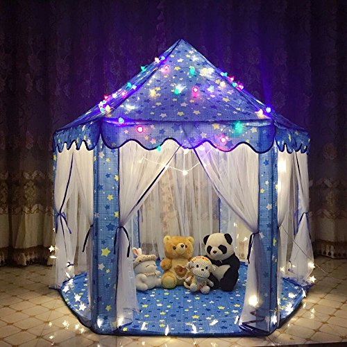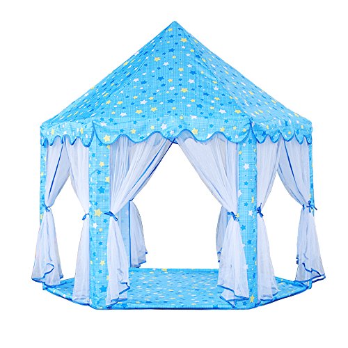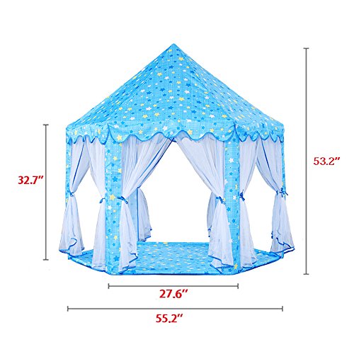 Jacone Girls Princess Castle Play Tent Indoor and Outdoor DIY Playhouse with Mosquito Net Design, 55"x 53"(DxH), Perfect for Kids Gifts (Blue)