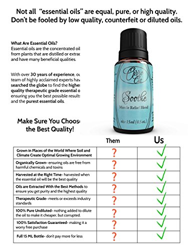 -. Feature : THE OVVIO OILS DIFFERENCE: Our Essential Oils stand apart by using only the highest quality, potent, and pure plant sources from all over the world. Our Soothe Muscle Relief Blend has essential oils from Brazil, Slovenia, China, Canada, Sir Lanka, Nepal, and India to create a powerful and natural blend for sore muscle relief. / DON'T SETTLE FOR LESS: Our experts have over 30 years' experience masterfully and artistically blending the oils by hand to create the perfect mix. The Soothe blend is created from 9 powerful essential oils, which are combined to provide sore muscles relief. With potent oil and a full 15 ml bottle, one bottle of Soothe may be equal to 2-3 of a lesser oil! / POTENTIAL BENEFITS AND USES: Soothe Muscle Relief may help provide relief from minor aches and pains, as well as temporary relief from rheumatism and arthritis. It is a very powerful oil for pain relief without any harmful chemicals or synthetics. Soothe is a safe alternative to over-the-counter pain relievers with the benefits of all-natural ingredients. / ATTRIBUTES OF TOP OILS: Oils are our life's work! We evaluate a variety of factors when sourcing oils, including: Optimal Climate, Harvesting Techniques, Soil Conditions, Distillation Practices, and Storage Methods. The result is the absolute highest grade, potent, and pure essential oils you can buy. / EXPERIENCE ALL OF OUR OILS: We expertly craft a number of proP.R.Ietary blends as well as offer single oils that will serve all of your aromatherapy needs. Some of our most popular blends include: Inhale (Respiratory), Slumber (Rest and Recovery), Soften (Women's Blend), Enhance (Mood Lifting), and Ease (Headache Relief). Popular Single Oils include Lavender, Sweet Orange, Eucalyptus, Tea Tree, and Rosemary. Search for Ovvio Oils to see them all!