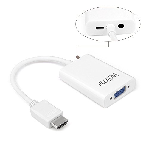 WEme HDMI to VGA Adapter 1080P Male to Female Converter with Micro USB Power Port & 3.5mm Audio Port for PC/ TV/ Laptop/ NoteBook/ HD DVD In White