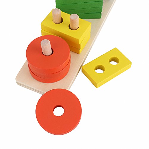 Set of Five kinds(20pcs) colorful wooden stacking blocks and a base,made fun with counting and stacking.