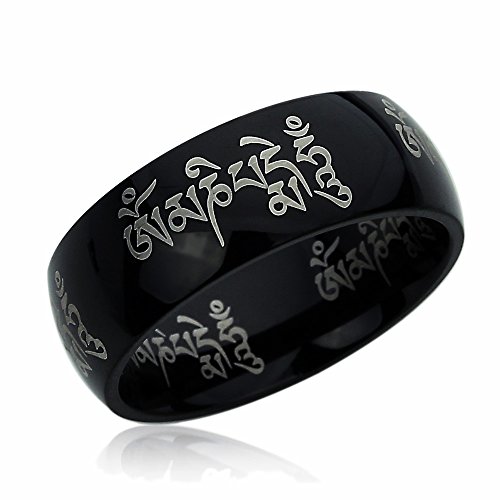 8MM Titanium Comfort Fit Wedding Band Ring Tibetan Mantra Om Mani Padme Hum Black Ring (5 to 13) - Size: 10.5
