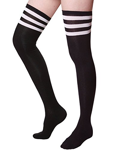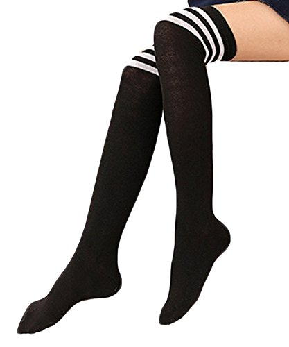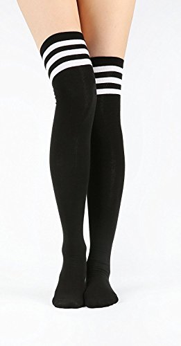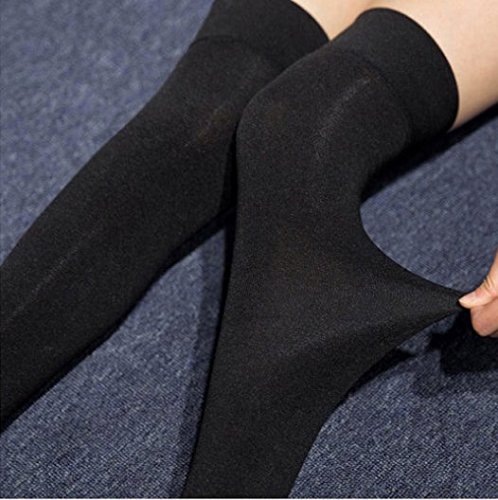 -. Feature : Warm footed tights with breathable texture allows for perfect comfort all day long. / True Black that will compliment your outfits. 60 Denier Solid Opaque Color can support multiple uses. Great for everyday wear, dancing etc / Microfiber Nylon for soft, comfortable, silky and durable feel,Highly elastic and durable, socks fit just over the knee on average height woman, flexible and comfortable. It will fit for your legs, the elastic bands at the top of the socks will not make you feel uncomfortable / Best gifts for friends:Thigh high socks are the ideal complement to your favorite skirts or shorts, suitable for most occasions in your daily life, it is also a perfect gift to yourself or friends