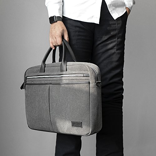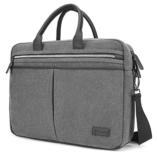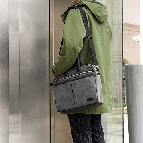 Tomtoc 15.6 inch Vintage Canvas Laptop Case Cover Shoulder Strap Bag Messenger Bag for 15 inch MacBook Pro and 15.6" Ultrabook Asus Acer Dell Lenovo HP Laptop, Gray