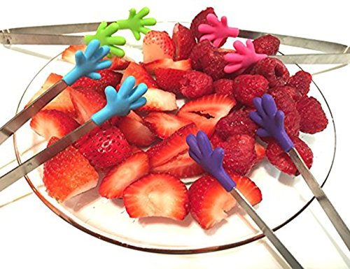 Description: mini Tongs are made of Stainless Steel with Silicone heads. Resistant to high degree heat, stain and odor free. These little tongs are awesome, highly durable, totally useful. The small size gives greater control over the items you want to flip over clean right up in the dish washer, and easily fit in the kitchen drawer Made of Food Grade Silicone and Stainless Steel Perfect for picking up kids favorite foods, include muffins, pancakes, cookies, cheeses, fruit, ice,etc. Best In All Tongs handles everything so well, made of silicone tips, heat resistant - They work perfectly to flip bacon and sausage and great for browning small pieces of meat, mushrooms, bacon strips, sausages, anything that you might want to flip or evenly brown.