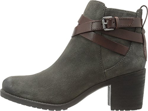 Layered leather straps wrap around the shaft of these suede Sam Edelman booties. Exposed side zip. Stacked heel and lug sole.