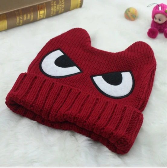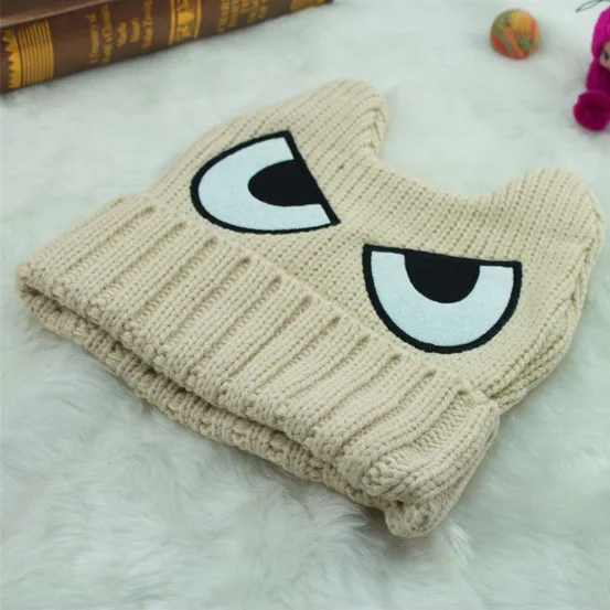 | [해외]악마 뿔 니트 모자 재미 만화 겨울 여자 캐주얼 캡 패션 큰 눈 고양이 귀 울 Skullies & 비니 파티 선물 |