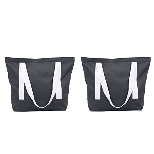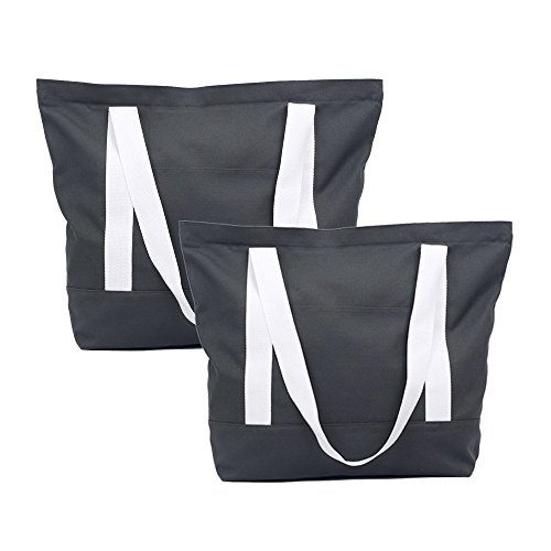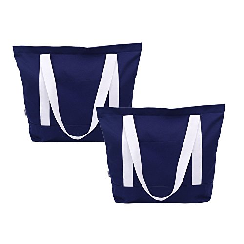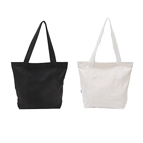 -. Title : Augbunny Heavy Duty 100% Cotton Canvas Zipper Beach Shoulder Grocery Tote Bag With Outer Pocket 2-pack