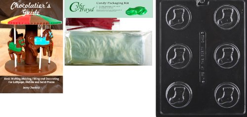 Cybrtrayd Stocking Cookie Chocolate Mold with Chocolatier's Bundle of 25 Cello Bags, 25 Red Twist Ties and Chocolatier's Guide