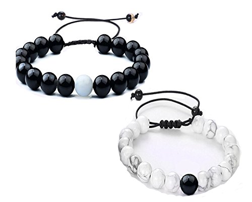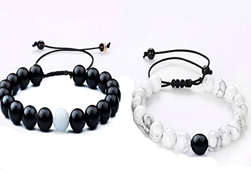 Couple Bracelets Long Distance Relationship Bracelet for Love Infinity Labradorite and Black Agate Gemstone His and Hers Bracelets (2pcs)