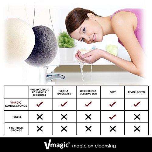 - PRODUCT MATERIALS : VMAGIC’s Konjac Sponge is made from konjac roots (natural vegetable fiber) with extra fine texture. The plant is native to Asia and has been used in Chinese medicine for years due to its ability to detoxify and restore health. It is ideal for cleansing for every-one, including newborn babies.