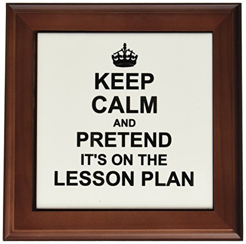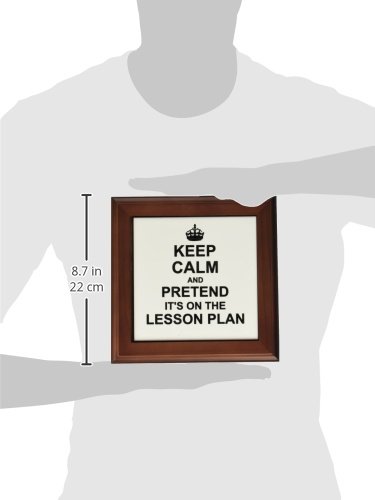 3dRose ft_157780_1 Keep Calm and Pretend its on The Lesson Plan Funny Teacher Gifts Teaching Humor Humorous Fun Framed Tile, 8 by 8-Inch