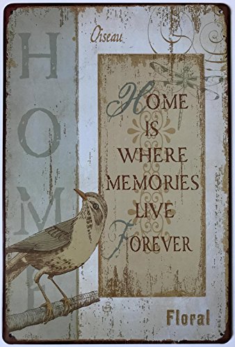 Home Is Where Memories Live Forever - Bird 30x20 cm Vintage Retro Metal Sign