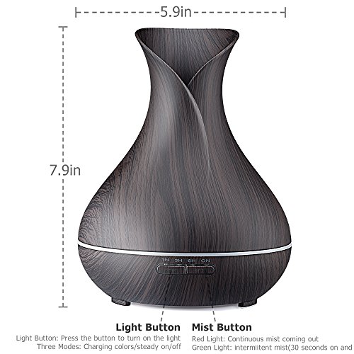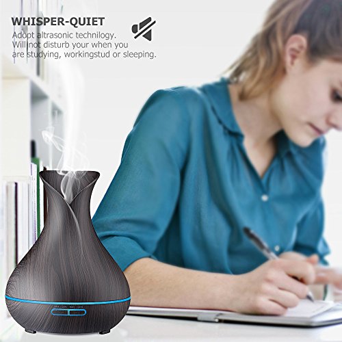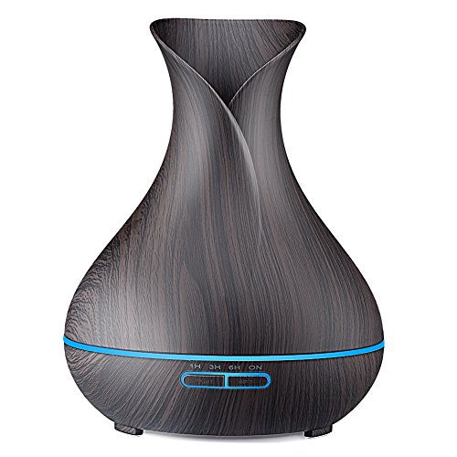 URPOWER Essential Oil Diffuser, 400ml Wood Grain Aromatherapy Diffuser Ultrasonic Cool Mist Humidifier with Color LED Lights Changing and Waterless Auto...