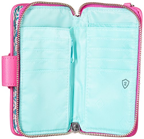 PERFECTLY SIZED: Our Signature RFID Smartphone Wristlet is perfectly sized for your phone - measuring 6 x 3.25 x 2 inches with 6 inch strap and features 8 card slots with room for cash, coins, and a clear ID window