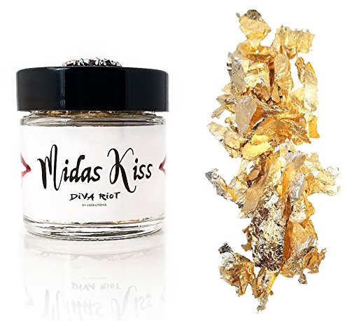 -. Title : Diva Riot: Midas Kiss Gold Leaf Flakes. Loose cosmetic gold leaf glitter makeup for eyes, face, body, and hair