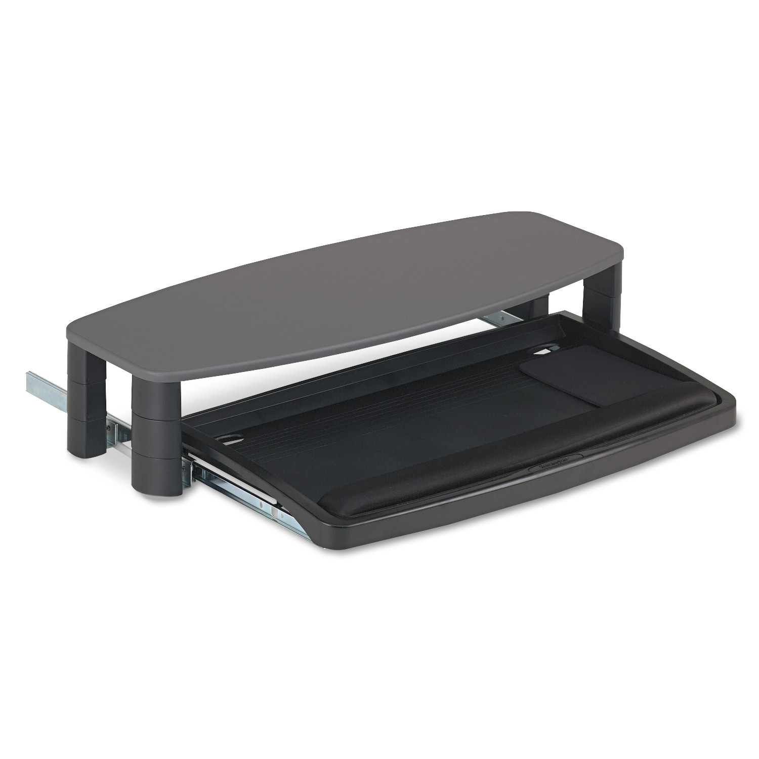 Universal design works over or under desk to fit any work space and individual body size. Keyboard drawer with SmartFit system adjusts both keyboard and monitor height. Optimizes your viewing angle and typing position for greater computing comfort. Keeps eyes in line with screen to reduce neck strain. Extra-wide, easy-glide drawer hides keyboard and mouse when not in use.