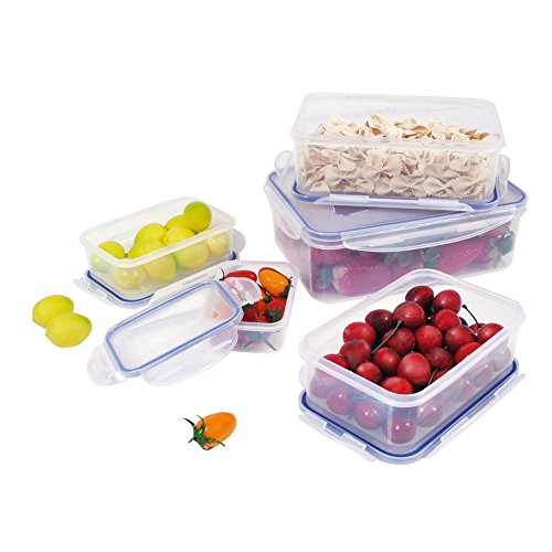 Bellaware Plastic Airtight Food Storage Containers with 4-locking-lid/ Set of 5/Big size