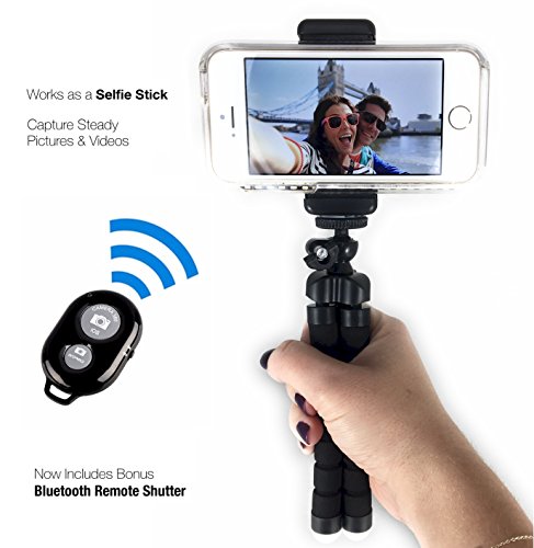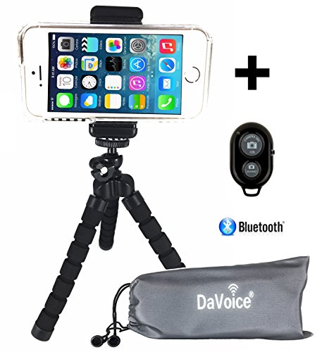 DaVoice Flexible iPhone Tripod Horizontal Vertical for Smartphone with Bluetooth Remote Control iPhone 7 6S 6 SE 5S 5C 5 4s 4 Samsung Galaxy S8 S7 S6 S5 S4 S3 S2 - Mini Cell Phone Tripod Stand Adapter