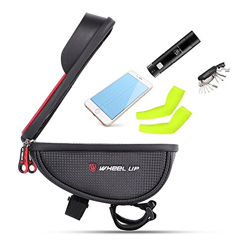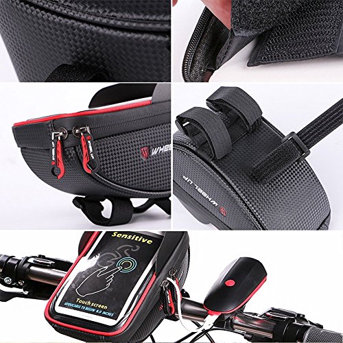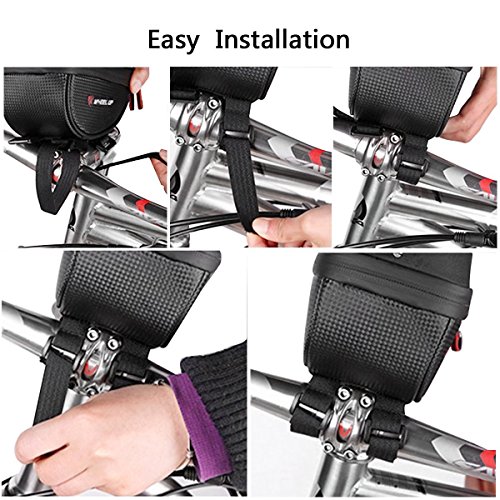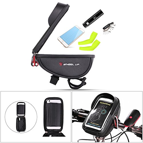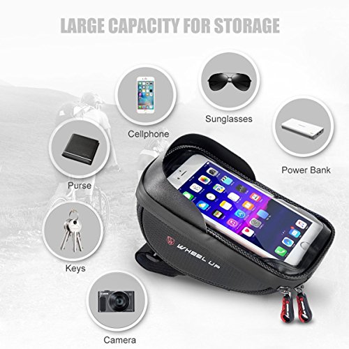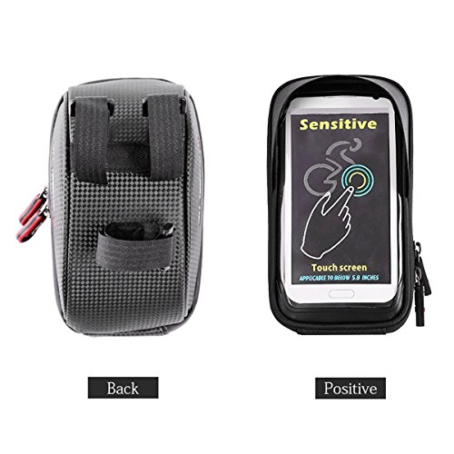 Studio : EKOOS Publisher : EKOOS Product Description Product description Specifications: - Material: 900D Typical Nylon - Product Size: 6.89 x 6.98 x 6 inch - Package Size: 7.5 x 4.8 x 7.5 inch - Item Weight: 285 g / 10.05 oz - Package Weight: 365 g / 12.87 oz - Compatible for phones in 6 inches and under 6 inches such as iPhone 7 / 6 / 6s Plus, Samsung Galaxy S6 / S7 / S8 /S8 Edge Note 5 / 4 / 3, HTC ONE, M7, M8, LG, Sony, Moto, Huawei, Nexus, etc. Features: 1.Touch Screen and Water Resistant - This waterproof bag is prevent your phone from water, snow, rain, mud, sand and dust. (Please notice that Touch ID does not work through the transparent cover). - Ideal choice for any bicycles, motorbikes, scooter handlebar, stroller bars or golf carts and etc. 2. Large Capacity for Storage - Large storage capacity can store your wallet, cell phones, earphones, keys, front light, tail light, repair tool kits and other small essentials according to your demand, a perfect choice for you. 3. Anti-splash Waterproof Zipper - Do not need to worry about wetting the phone and stuff in your bag on rainy days with its splash-proof function. - Seamless zipper looks very beautiful, and also has a good waterproof effect. 4.Easy to Install - The velcro straps presses your phone tightly against the plastic film to allow for seamless interaction with you phone screen. And it is easy to install onto your bike handlebar, just need to wrap the velcro straps tightly around your handlebars with firmly pressing. Note: This bike waterproof bag is compatible for phones under 6 inches; - Although it has a good waterproof function, please do Not put your electronic devices in this case in water for a long time. 0