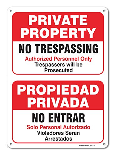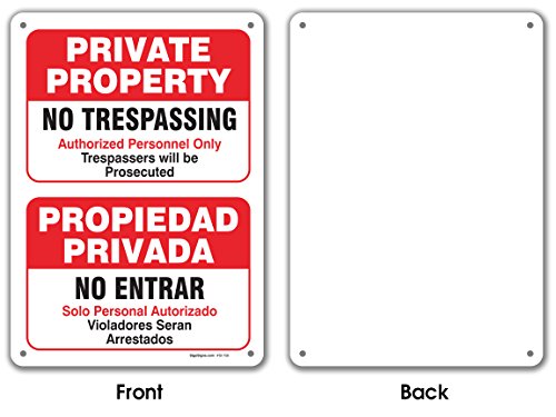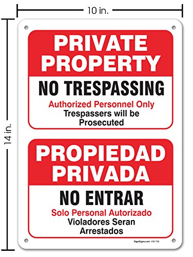 Private Property No Trespassing Sign, Large 10 X 14" Aluminum, For Indoor or Outdoor Use - By SIGO SIGNS