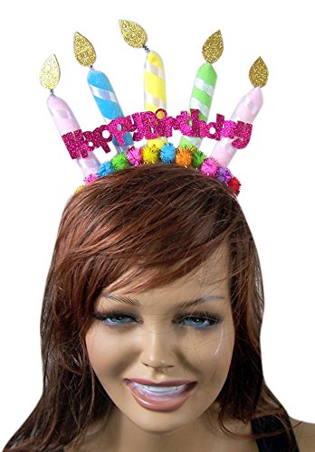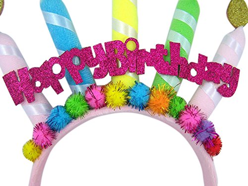 -. Feature : One size fits most / Felt candles on headband with Happy Birthday banner / Happy Birthday headband accessory / Great birthday party accessory for girls, teens, and women / Great party hat for any kids birthday party!