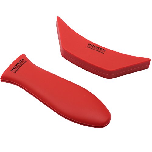 HOMKOM - COMBO PACK Silicone Assist Handle Holder for Cast Iron Frying Pans,Enameeled Cookware Handles-red