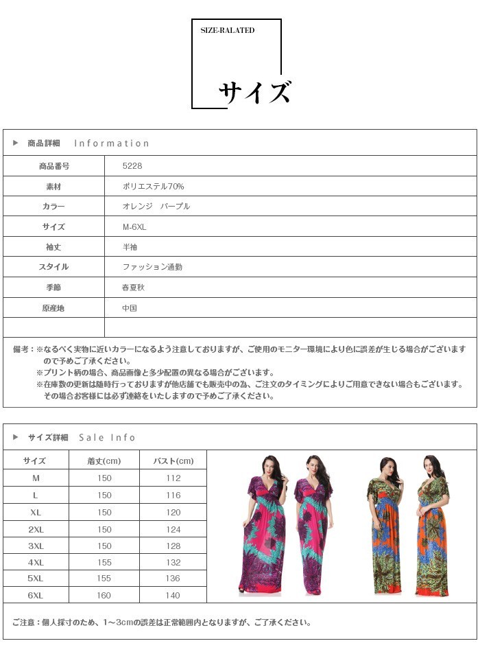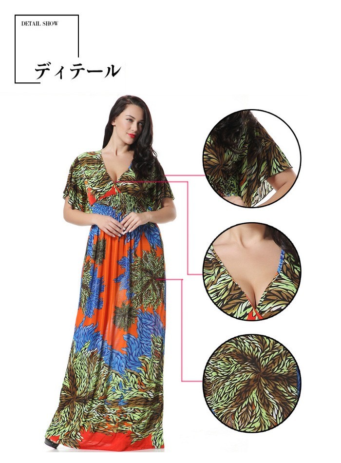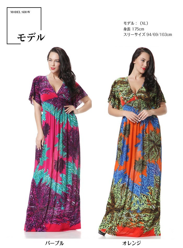 マキシワンピース 夏 大きいサイズ ロング丈 シフォン ワンピース レディース 半袖 花柄 チュニック ワンピース ゆったり 欧米セレブマキシワンピース 夏 レディース 大きいサイズ ドレスリゾート気分満喫の小顔効果Vネック花柄マキシワンピースです。ボディラインを綺麗にカバーしてくれる程よい加減がポイント。着やすいシルエットとハイウエストの切り替えラインがスタイルにメリハリをプラス。ビーチサイドでの散歩や、クルージング、とにかくリゾート地にはぴったり☆揺れ動くたびに漂うその優雅さが必ず女子力をアップしてくれます!ふわっと広がる裾が脚を細く見せてくれるのも嬉しいです! 商品詳細:半袖ワンピース 夏 ロング丈ワンピース マキシワンピ マキシ丈ワンピース Vネック素材:ポリエステル70%カラー:オレンジ パープルサイズ:M-6XL袖丈:半袖スタイル:ファッション通勤季節:春夏秋原産地:中国マキシワンピース 夏 大きいサイズ ロング丈 シフォン ワンピース レディース 半袖 花柄 チュニック ワンピース ゆったり 欧米セレブマキシワンピース 夏 レディース 大きいサイズ ドレス