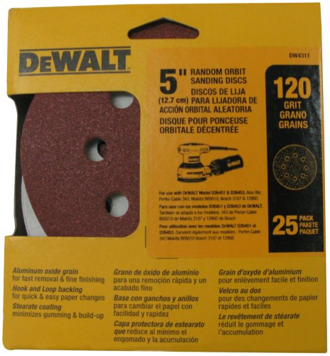 DEWALT DW4311 5-Inch 8 Hole 120 Grit Hook and Loop Random Orbit Sandpaper (25-Pack)