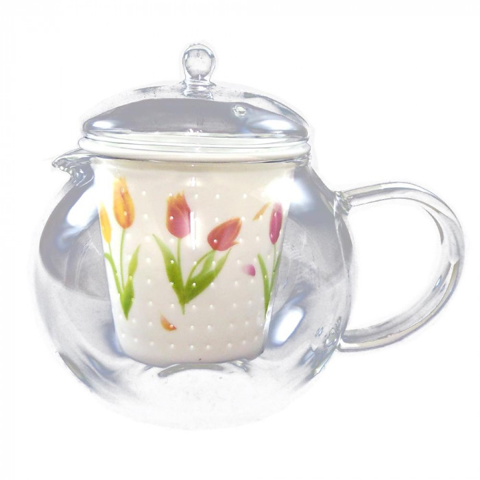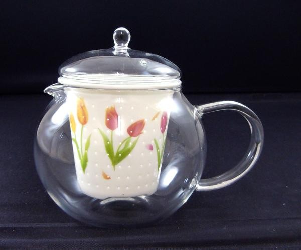 ガラスのティーポットに有田焼の茶こし&蓋がおしゃれ☆日本茶・紅茶・中国茶・ハーブティーなどいろんなお茶にご使用下さい。
