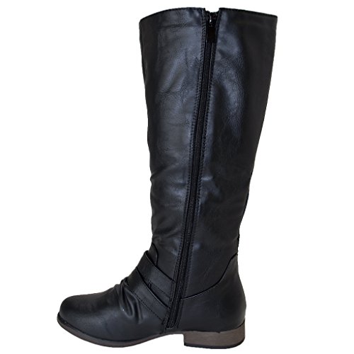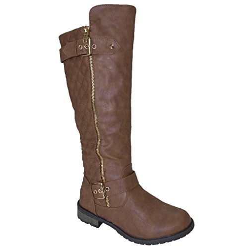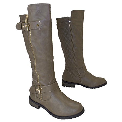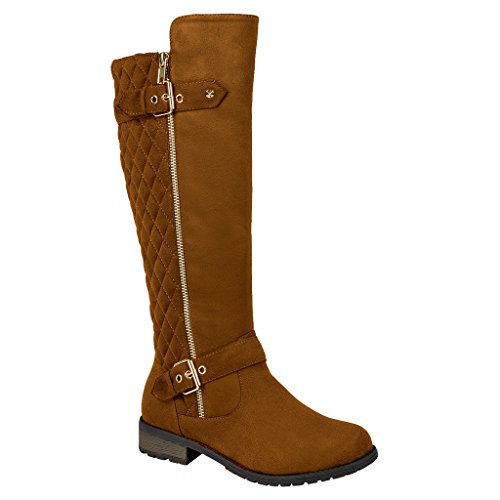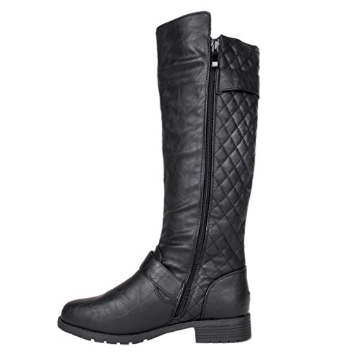 | (FOREVER)/Women's/Boots/DIRECT FROM USA/Women's Zipper Quilted Buckle Knee High Riding Boots Trends SNJ Shoes |