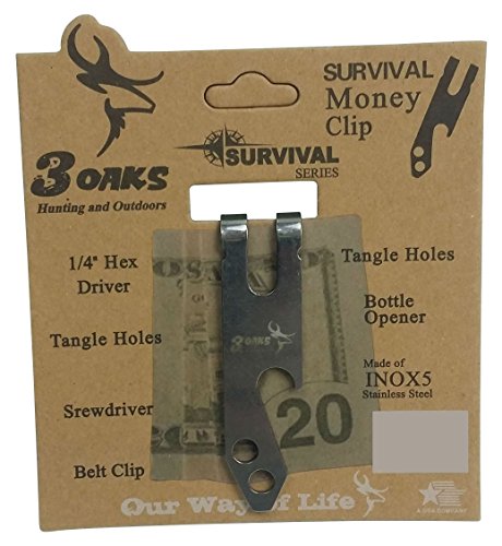 -. Binding : Apparel -. Brand : 3 Oaks -. Color : Silver -. Department : mens -. EAN : 0692016019444 -. Feature : INOX 5 Stainless Steel All In One Metal Money Clip Wallet. Makes A Great Gift / FEATURES: Screwdriver, Belt Clip, Tangle Holes, Bottle Opener, 1/4" Hex Driver- INOX 5 Stainless Steel All In One Metal Money Clip Wallet / OTHER USES: Some People Have Found Other Great Uses For This Money Clip Such As- A Pocket Clip To Hold Your Keys, A Survival Tool That Clips On Your Belt, Handy Bottle Opener, Saves Pocket Space / EXTRA INFORMATION- This Money Clip Comes Tight. Depending on How Much Money You Are Wanting Put In It This Will Allow You To Adjust it Accordingly. / This Stainless Steel Survival Money Clip Is not Only Packed With Everyday Tools, But Is Also Super Stylish And Will Catch Everyone's Eye. -. PackageQuantity : 1 -. ProductGroup : Apparel -. ProductTypeName : ACCESSORY -. Size : Small / Medium -. Title : 3oaks Survival Series - Stainless Steel Survival Money Clip w/ Multipurpose Tools -. UPC : 692016019444