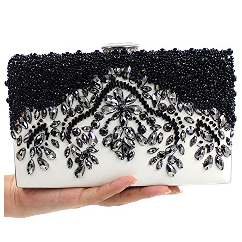-. Feature : 【STYLE】 : Beaded Bridal Clutch Bag With Metal Shoulder Chain(47 inches long chain forshoulder bag, 13 inches short chain for wristlet handbag)) / 【MATERIAL】 : Black Pearls, Metallic Beaded Decoration in Floral Pattern, Rhinestones / 【CLOSURE】: Top Diamond style Clasp, Back side of the clutch bag is Soft Black PU Leather / 【DIMENSION】 : 7.9 x 1.6 x 5.1 inches. It fits in IPhone7 Plus, Cash, Lipstick, Small Cosmetics, Keys. / 【OCCASION】 : Wedding, Party, Cocktail Ceremony, Daily, Dating