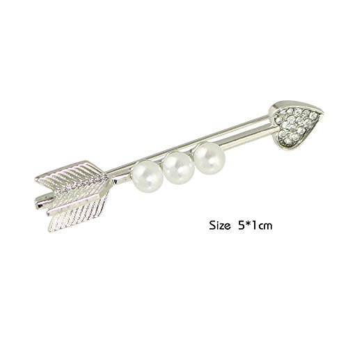 -. Title : Feelontop New Style Silver Alloy Pearl Rhinestone Heart Arrow Shape Brooches Pins with Jewelry Pouch