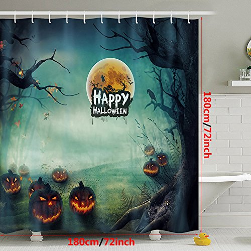 -. Feature : Halloween Shower Curtain Series - Perfect Halloween shower curtain to decorate you bathroom. This shower curtain resists creasing and shrinking. Machine washable and can be put in the dryer. It is quick drying seeing polyester does not absorb much moisture. / Premium Quality Waterproof Material - Made with 100% polyester. No PEVA or PVC material. High quality digital P.R.Inting allows for many vibrant colors to be used and increases P.R.Int longevity. Machine washable and durable. Reinforced buttonholes provide a secure and durable opening for hooks to be installed. / Suitable Decoration Size - Measures in 72 x 72 inch(L*W). Waterproof polyester fabric shower curtain with latest design. Vibrant colors, Clear image, No fading, No dyes harming health of your family. Decorate your shower room to adjust the Halloween atmosphere. / Package Contains - 1 * Polyester Waterproof Fabric Shower Curtain 72" X 72"; 12 * plastic hooks. Not a common usual shower curtain you can find anywhere. Unique and fun. A great horror set add to your Halloween. / 100% SATISFACTION GUARANTEED: Your satisfaction is our P.R.Iority. If for any reason you are not completely satisfied after receiving your product, we offer a no hassle, no questions asked money back guarantee.