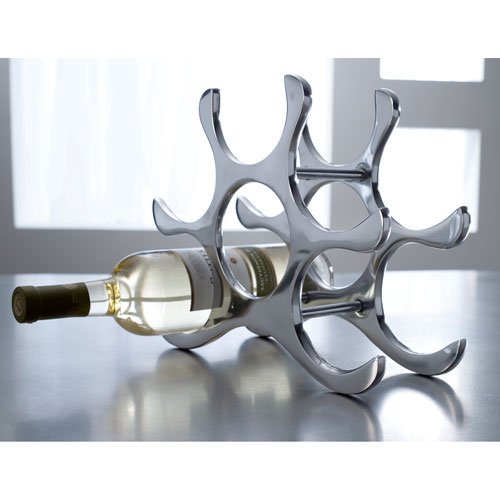 Countertop Wine Rack, 6 Bottle Holder, Polished Aluminum Silver