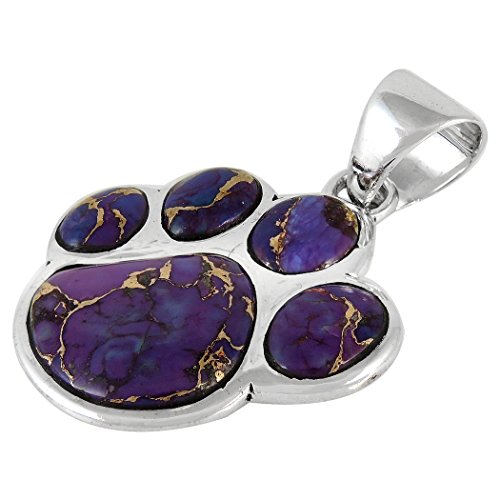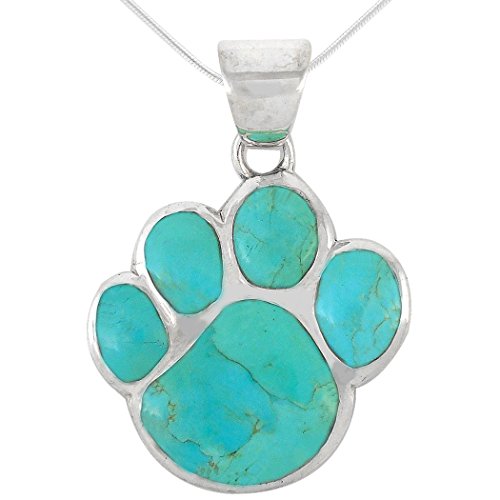 -. Title : Dog Paw Pendant Necklace in 925 Sterling Silver with Genuine Turquoise & Gemstones (20" Length)