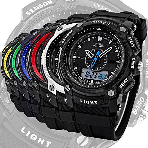 [ACI-NBC] 선택할 수 있 6 색 OHSEN 손목시계 디지털 아나운서 표시 디지탈 아날로그 다기능 워치 LED 라이트 방수 스톱워치 알람 스포츠 아웃도어 캐주얼 맨즈