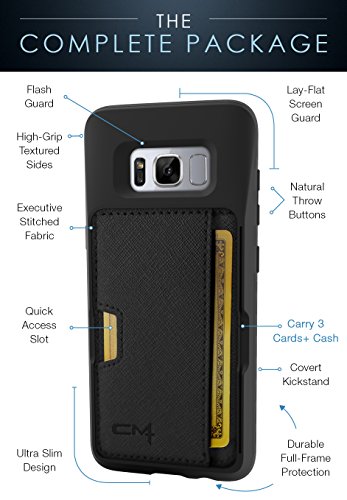 Studio : CM4 Publisher : CM4 Binding : Wireless Phone Accessory Product Description The CM4 Q Card Case for Samsung Galaxy S8 is an ultra slim wallet case that fits 3 credit cards plus cash for maximum convenience and durability. Specially updated to complement Galaxy S8 design, the Q Card Case features a patented soft-touch rubber grip and premium fabric construction with a streamlined pocket to carry just what you need while on-the-go. A subtle non-slip texture provides extra grip and is soft to the touch. The High-Grip Textured Sides enhances control of your device so it's less likely to slip out of your hand. The Lay-Flat Screen Guard and Natural Throw buttons provide ultimate screen protection and enhance the organic connection with your phone. The Q Card Case also features the innovative Credit Card Kickstand - slide a card into the hidden slot to prop your phone into 2 different viewing positions for seamless video watching wherever you are. 0
