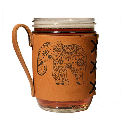 Elephant Leather Wide Mouth Mason Sleeve/ Holder/ Hugger Kit Includes Leather Wrap and Wide Mason Jar