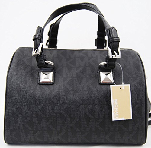 Michael Kors MD Grayson Satchel Handbag Signature MK Black PVC with Cross Body Strap