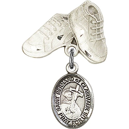 -. Title : Sterling Silver Baby Badge with St. Bernard of Clairvaux Charm and Baby Boots Pin 1 X 5/8 inches