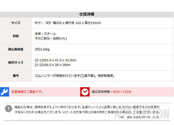 ●耐荷重は安心の(約)110kg