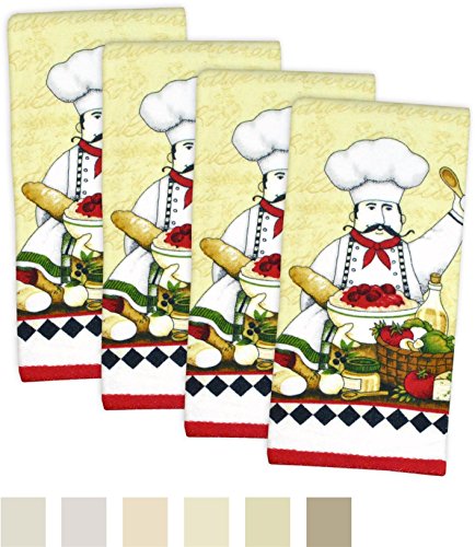 DII 100% Cotton, Ultra Absorbent, Washing, Drying, Printed, Decorative Kitchen Dishtowel, 15 x 26" Set of 4- Chef