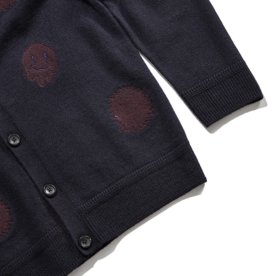 - 도트 패턴과 시즌 테마 멜팅 스마일로 포인트를 준 키즈 가디건.