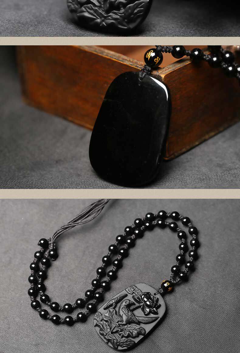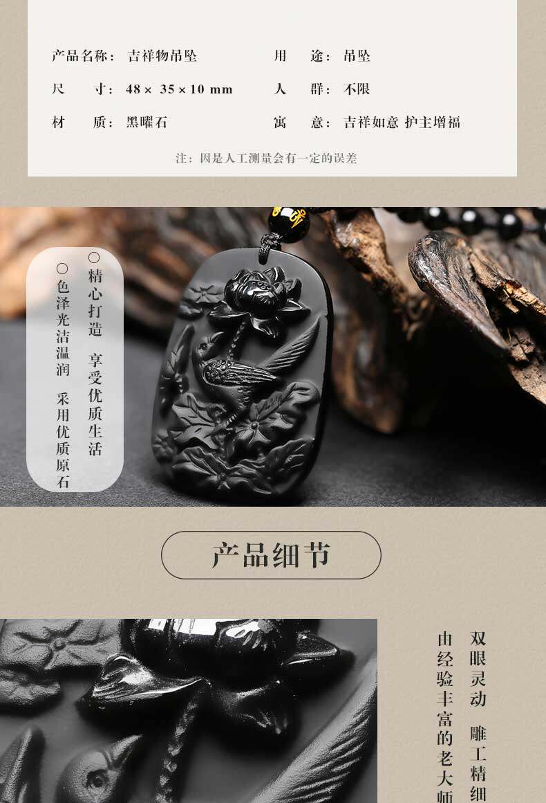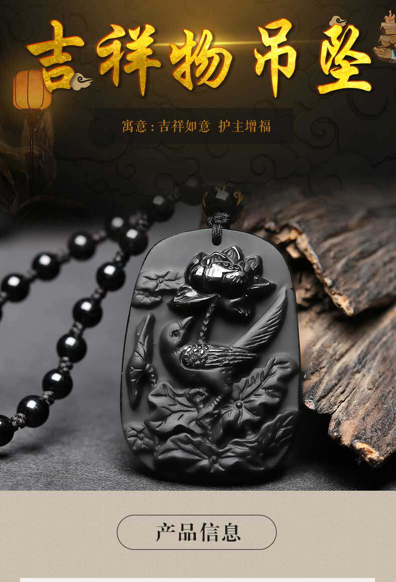 新品乌金黑曜石护身符 喜鹊登梅属蛇吊坠开运吉祥物项链