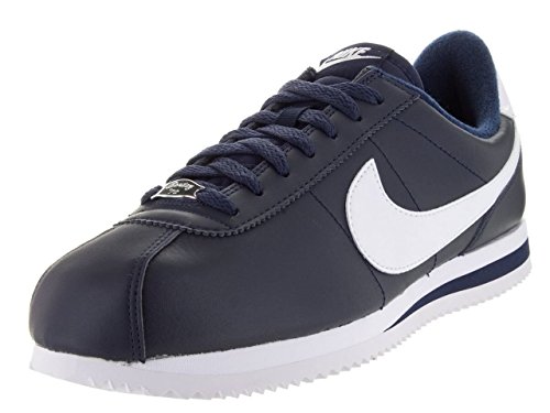 (NIKE)/Men's/Athletic Outdoor/DIRECT FROM USA/Nike Men's Cortez Basic Leather Casual Shoe Obsidian/White/Metsllic Silver 9 D(M) US