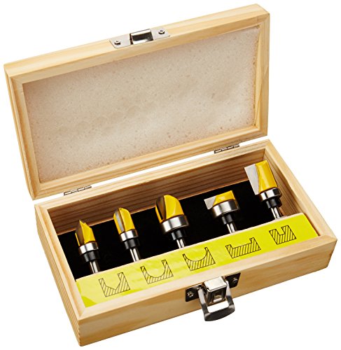 Yonico 14525q 5 Bit Pattern/Template Flush Trim Router Bit Set, 1/4-Inch Shank