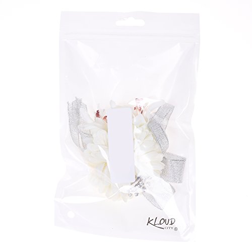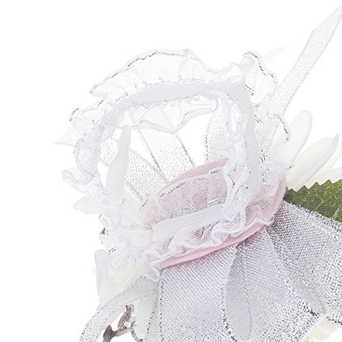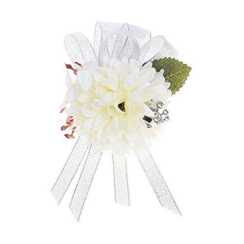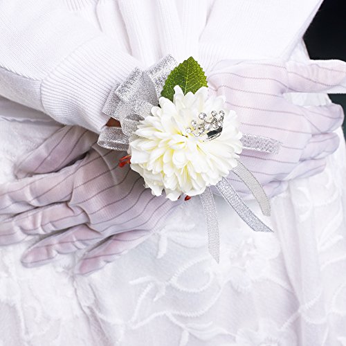 Kloud City Wedding Bride Bridesmaid White Daisy Petal Artificial Floral Wrist Corsage Hand Flower with silver mater crown and shiny ribbon