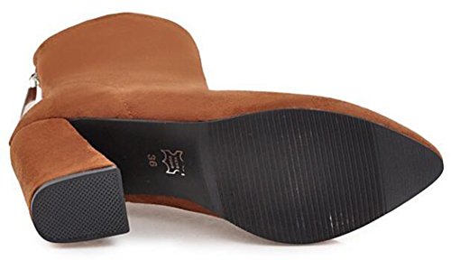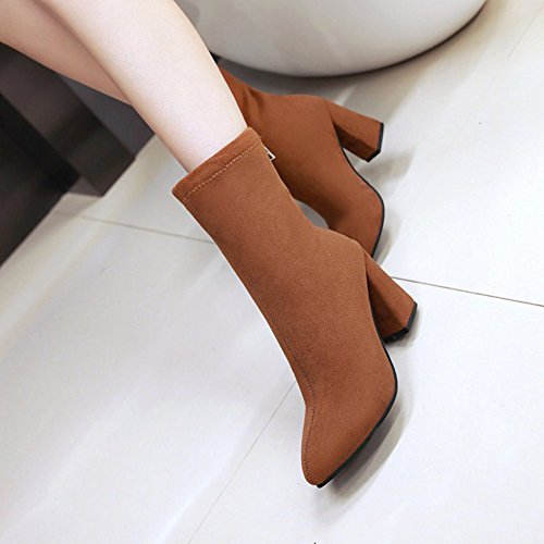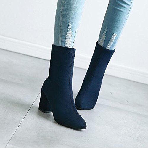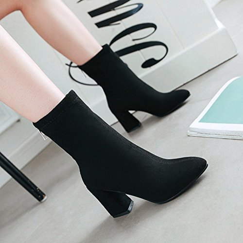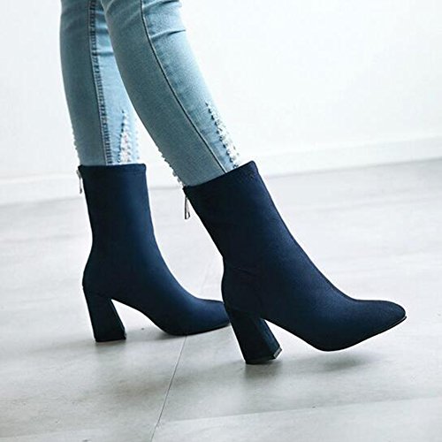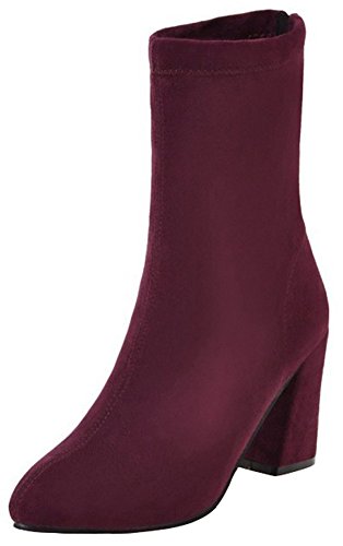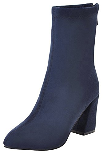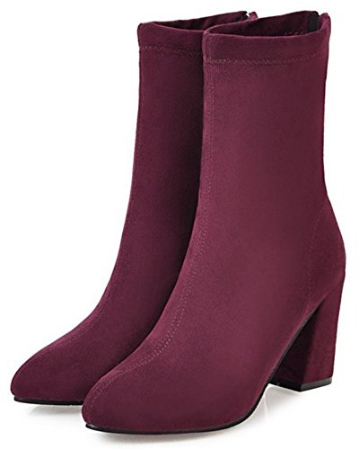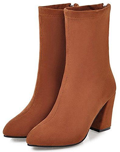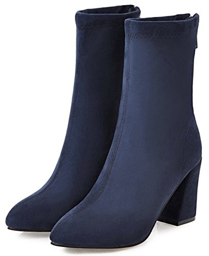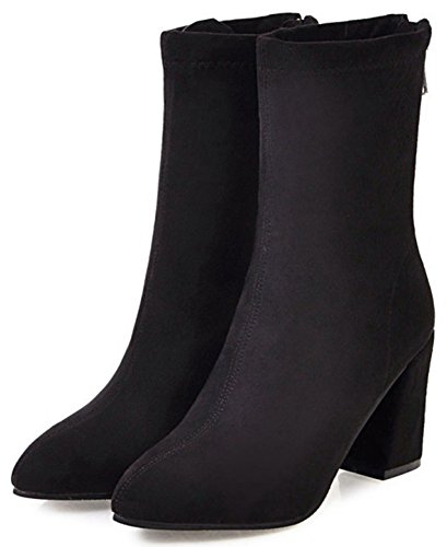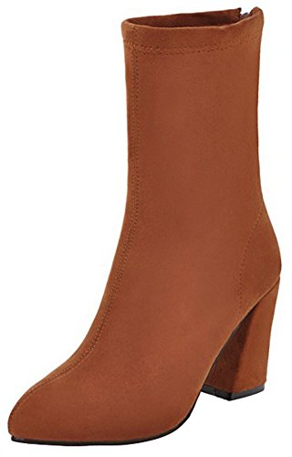 (Mofri)/Women's/Boots/DIRECT FROM USA/Mofri Women's Dressy Splicing Block High Heel Pointed Toe Faux Suede Back Zipper Mid Calf Boots